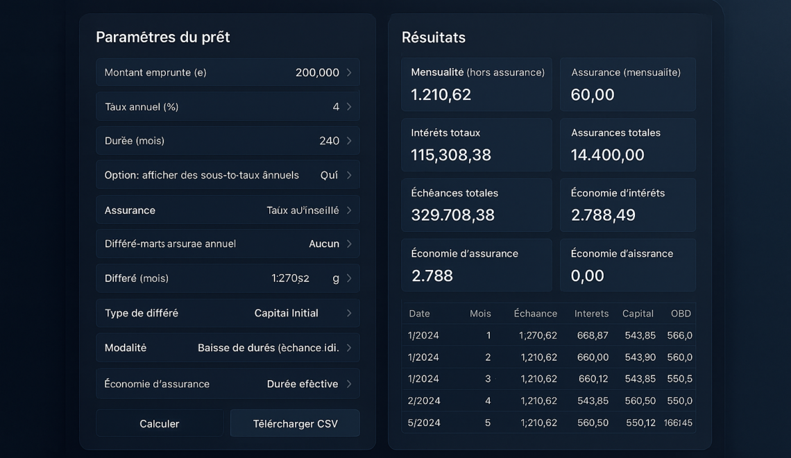 👉 offrir un outil clair, rapide et complet pour comprendre le coût réel d’un crédit, avec TAEG, différé, assurance, remboursement anticipé et même export CSV en un clic.